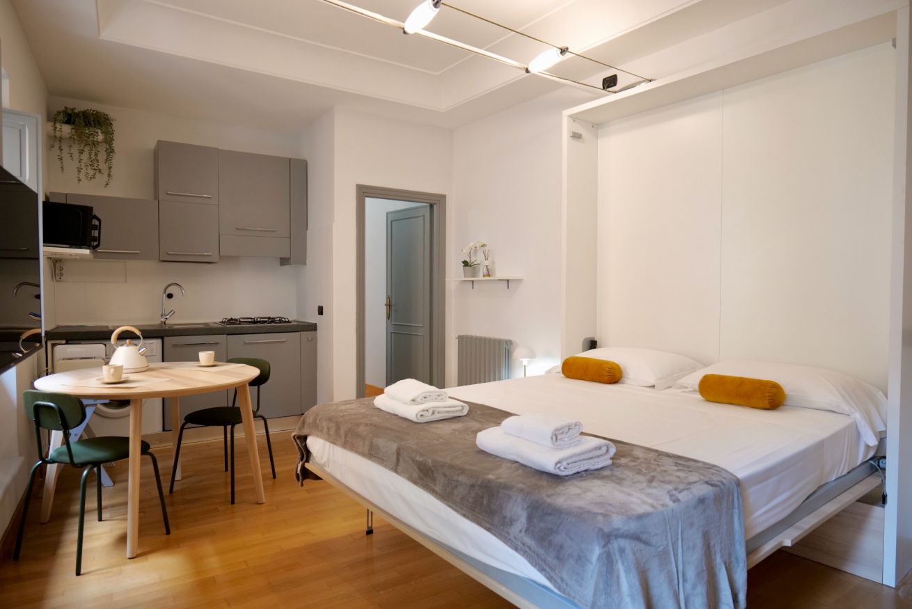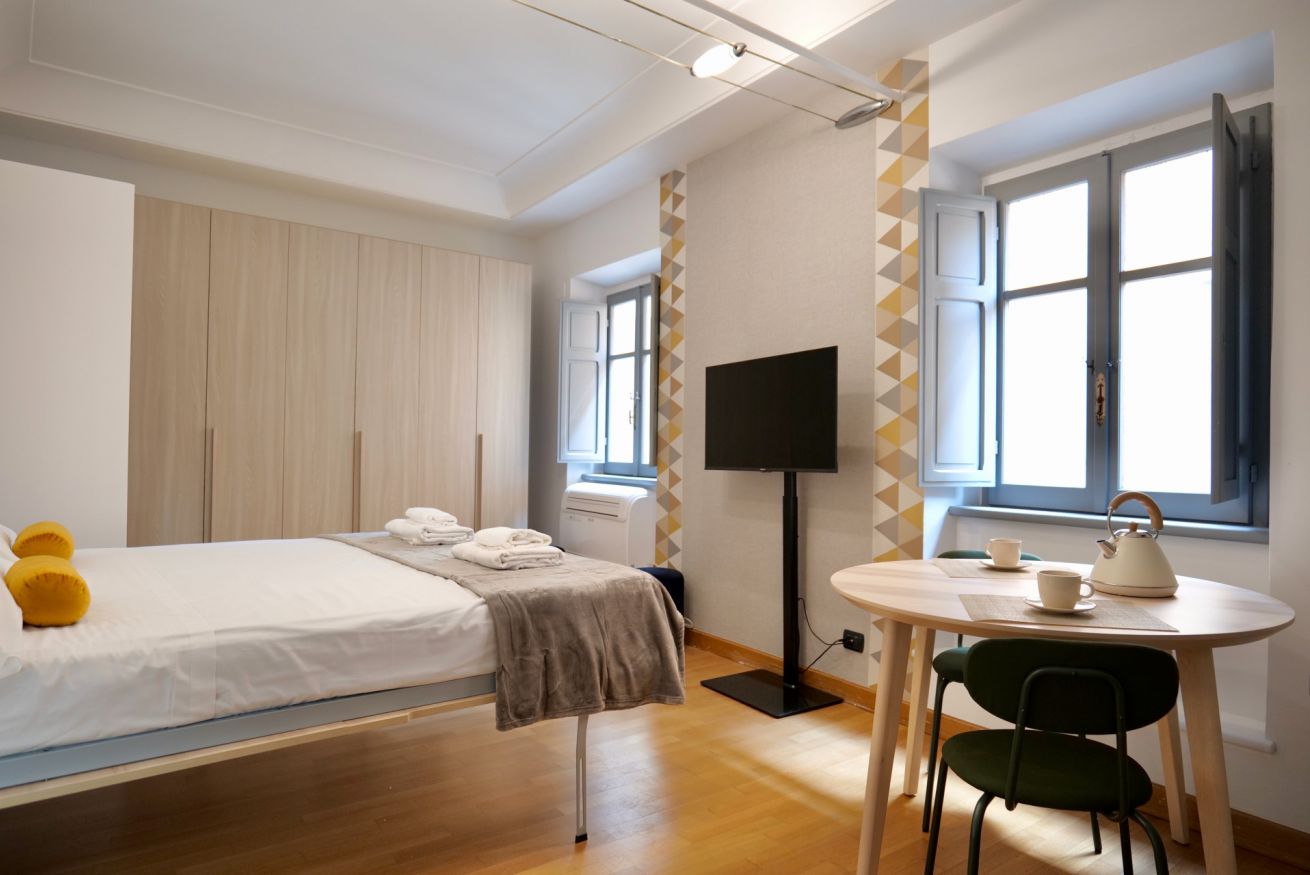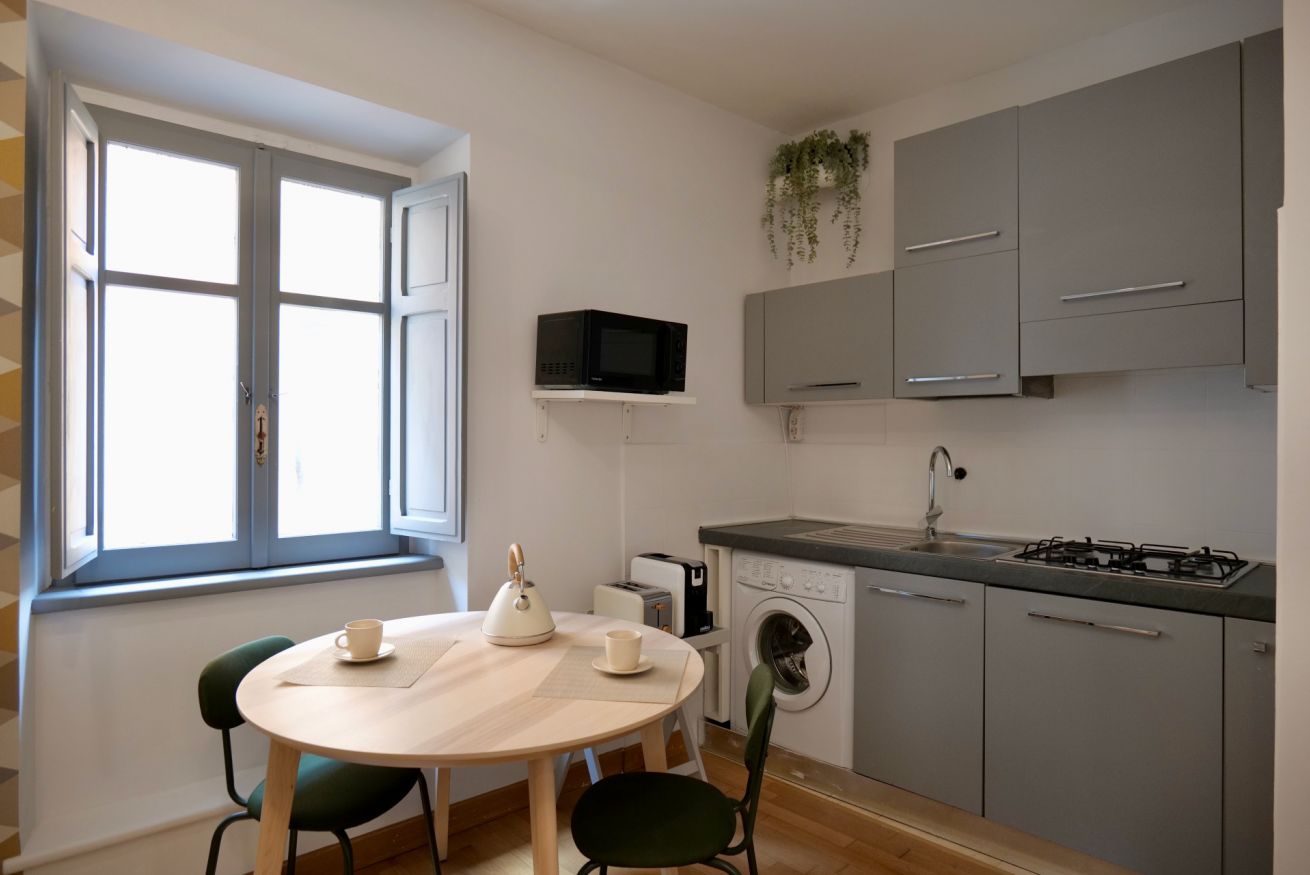 Questo piccolo ma accogliente monolocale si trova nel cuore di Trastevere, a pochi passi dalla Basilica di Santa Cecilia. L'appartamento offre un ambiente intimo con un comodo letto matrimoniale e un pratico angolo cottura, perfetto per preparare pasti veloci. Il bagno, pur essenziale, si distingue per il suo stile deciso e moderno, donando carattere all'intero spazio. Ideale per chi desidera vivere un'esperienza autentica e rilassante nella suggestiva atmosfera di Trastevere.